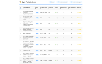 CF Gym Lens is een handige Chrome-add-on die gebruikers van Codeforces voorziet van een speciale Gyms-tab op hun profiel. Deze tab geeft een overzicht van de gymdeelnamegeschiedenis en is eenvoudig te vinden naast de sectie 'Contests'. De add-on biedt rijke gegevens over deelname, waaronder namen van wedstrijden, types, duur, opgeloste problemen en het aantal inzendingen. Dit maakt het gemakkelijk voor gebruikers om hun prestaties te volgen en te analyseren.